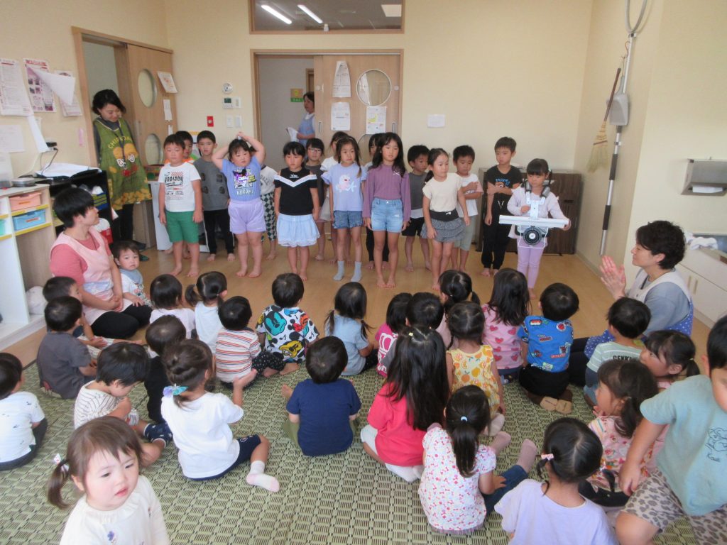 きいろさんが、「さんぽ」の歌をりすさんに披露しました。とっても上手でした(^^♪