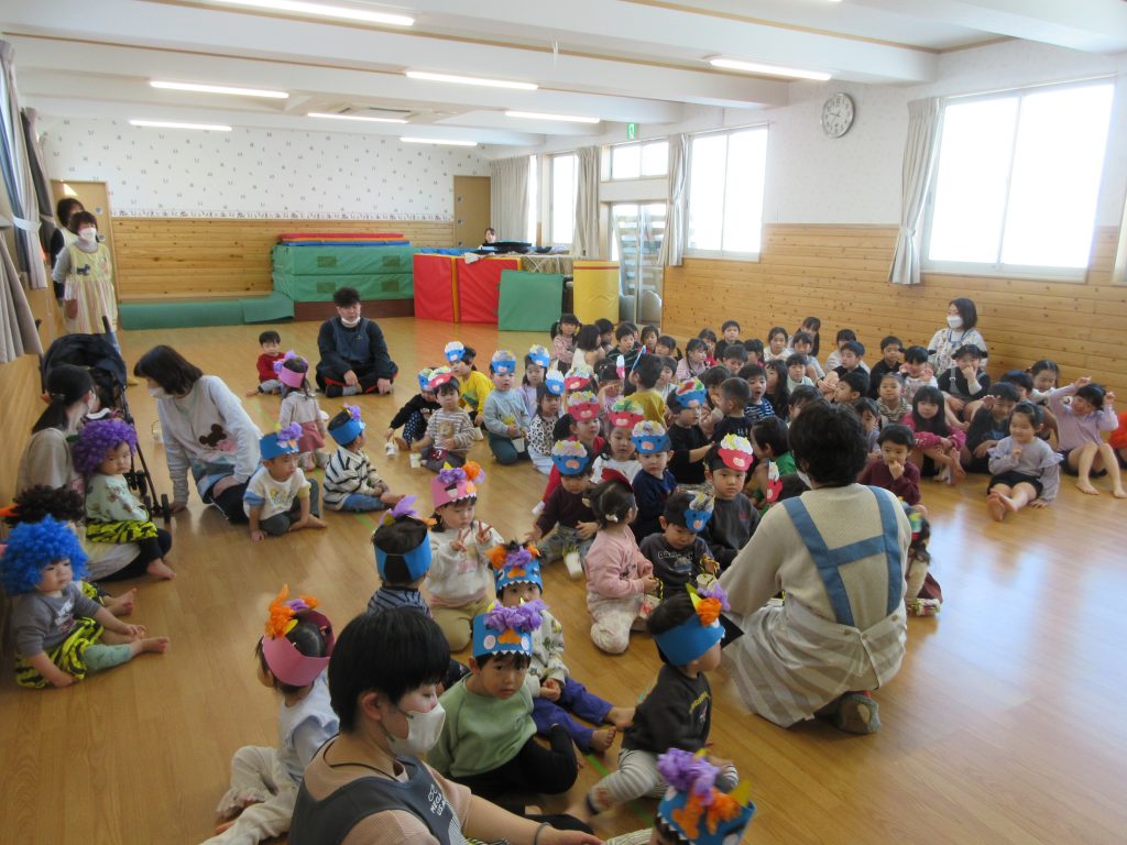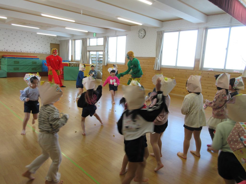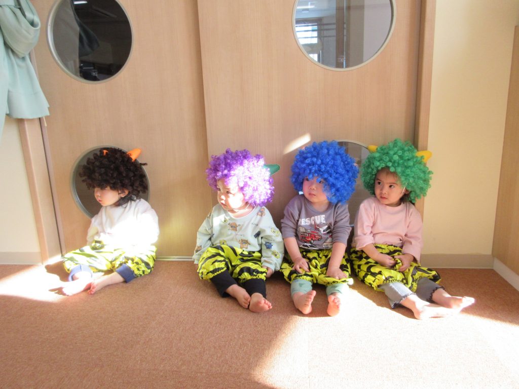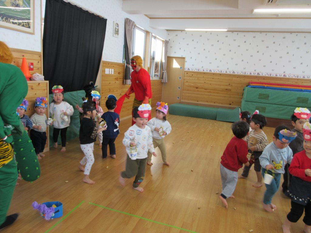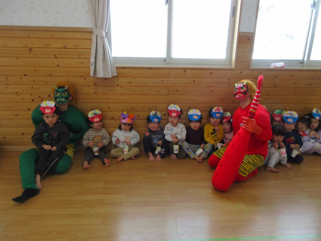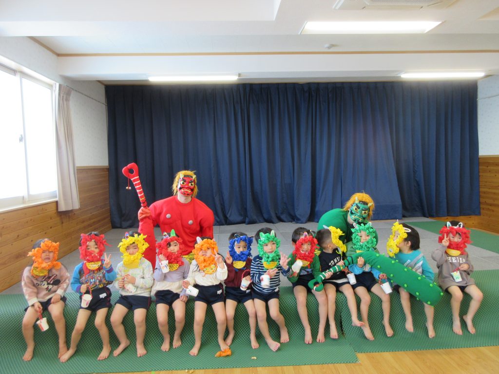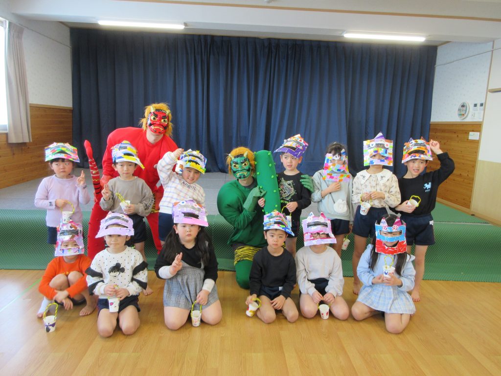 泣き虫鬼、怒りんぼ鬼、悪い口鬼、食いしん坊鬼、等々、色んな鬼を退治するんだと言っていました👹お家で、何鬼を退治したのか聞いてみて下さい。