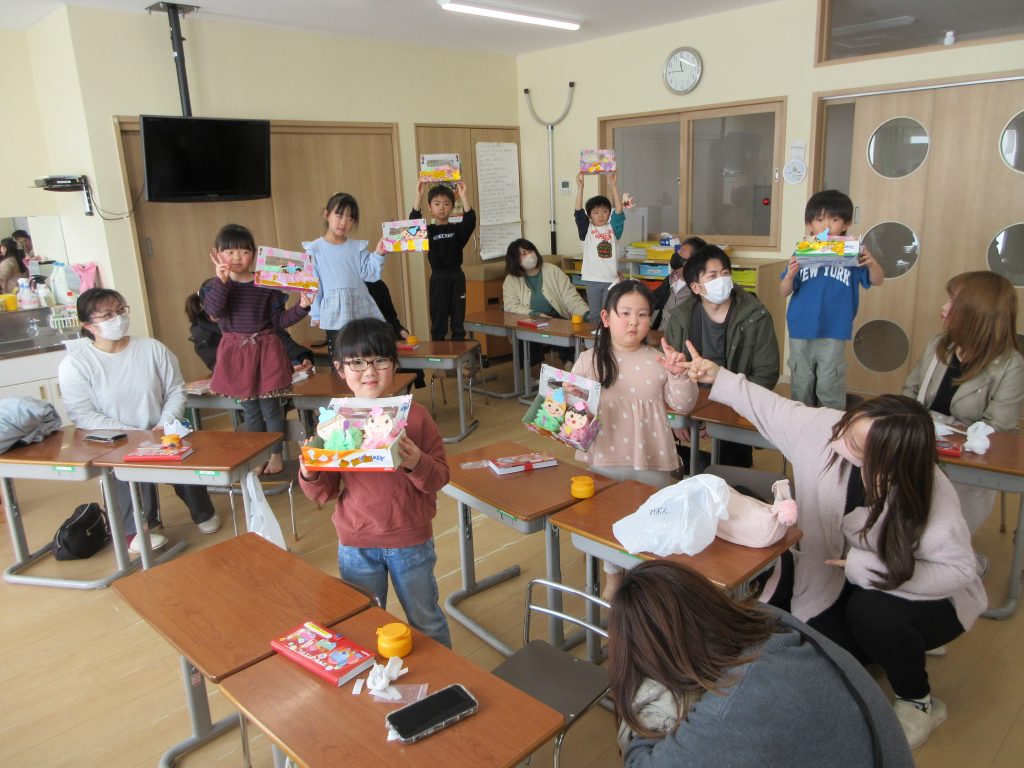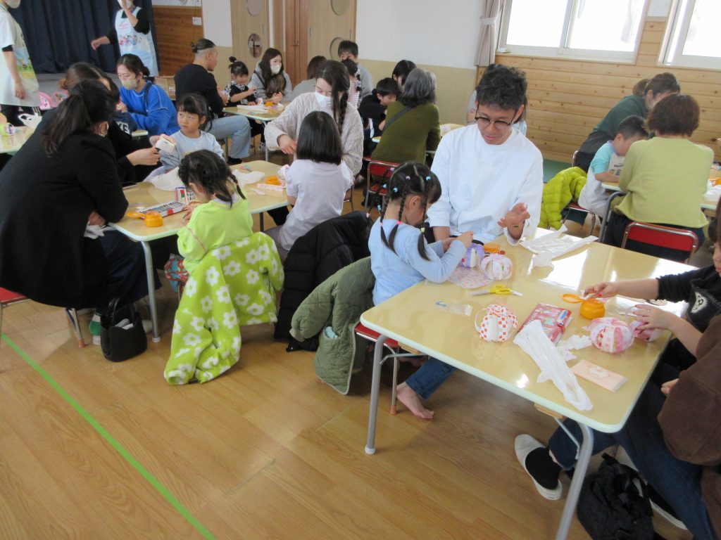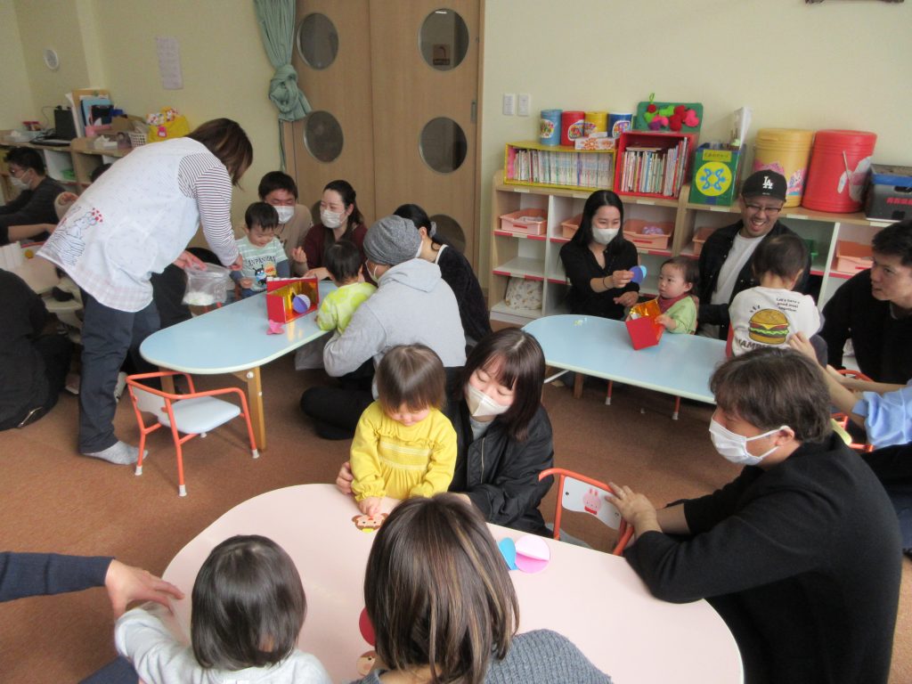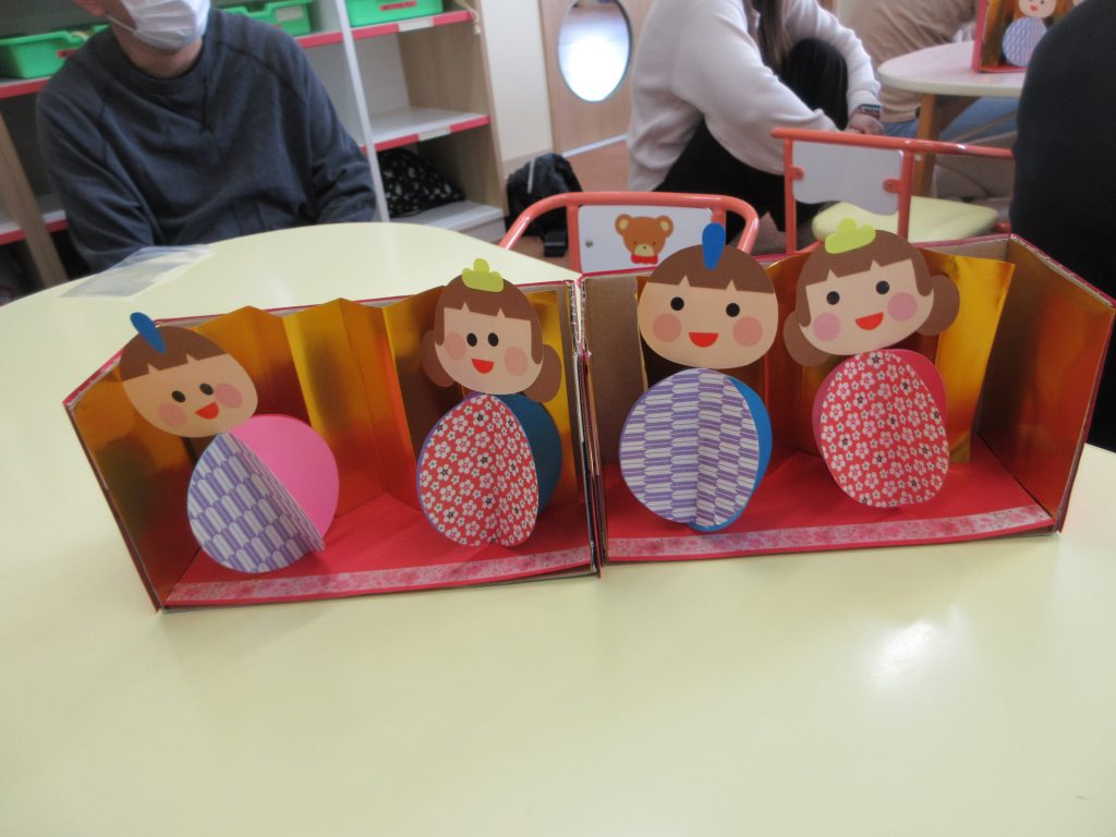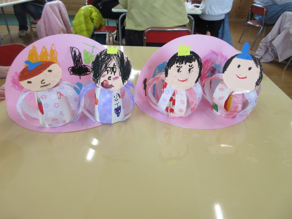 ぞう組3歳児親子製作雛飾り出来ました。上手にハサミを使って製作してましたょ。