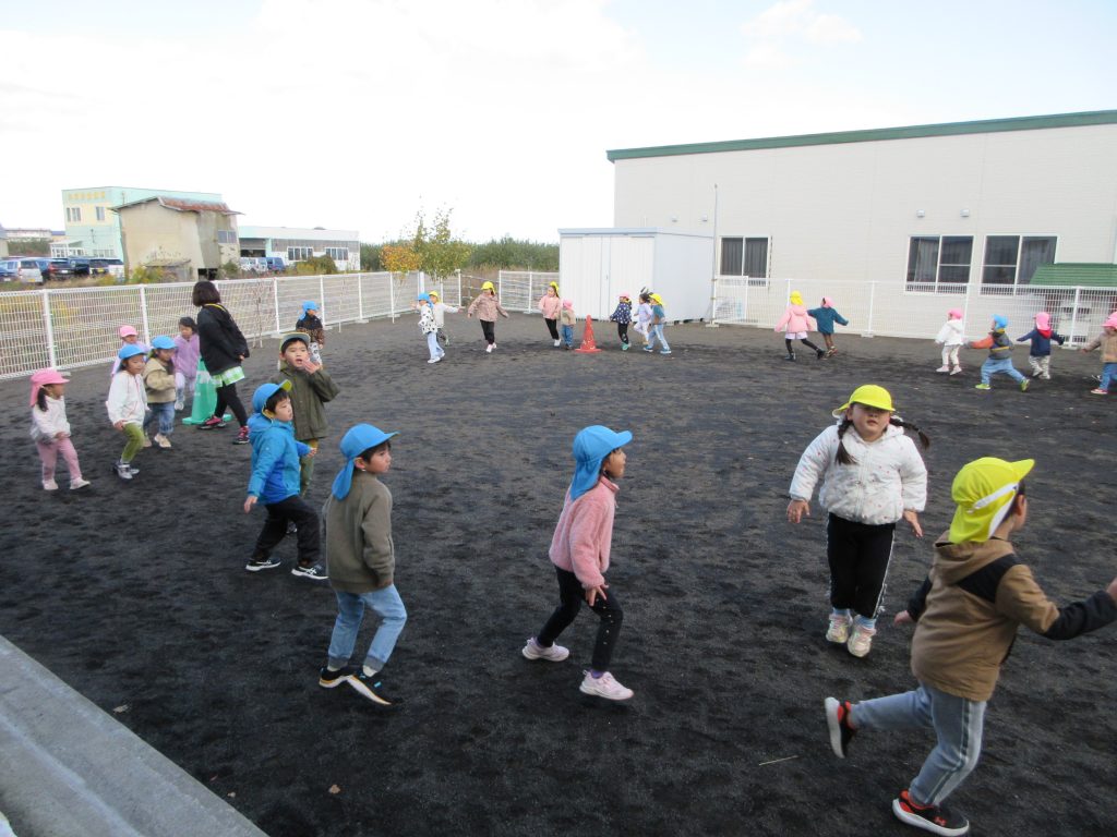 久々に天候が良かったので、ぞう組は、中庭でかけっこをして体力作り👣
