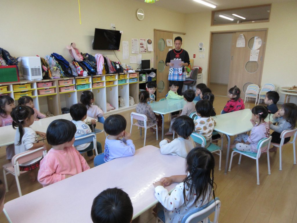 ひよこ組さんは、絵本の読み聞かせで、ちゃんと座ってみていました。🐥