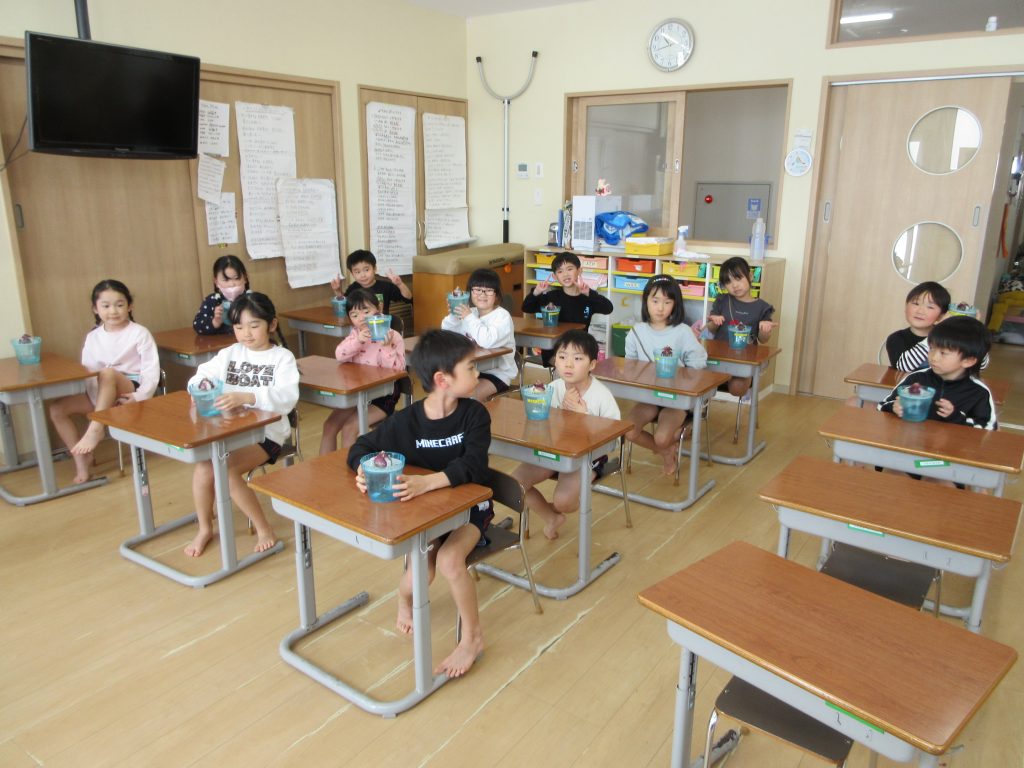 年長児【ヒヤシンス】を水耕栽培します![]()