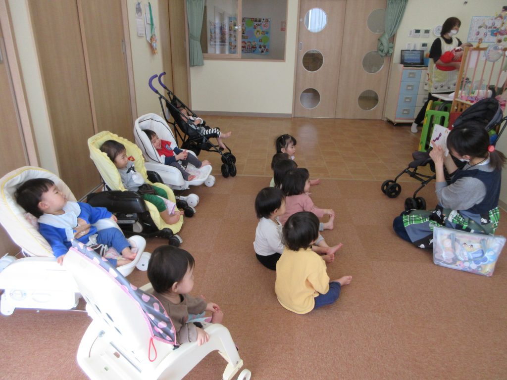 ひよこ組のお友達も増えて喜んで、絵本の読み聞かせを見聞きしていました📚